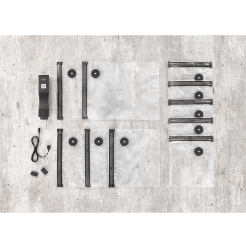 - Inkl. 10 ZIP-Beutel (5 Stück 20x23 cm, 3 Stück 26x23 cm, 2 Stück 26x35 cm), 2 ZIP-Locker, USB-C Ladekabel und CASO Food Manager Sticker