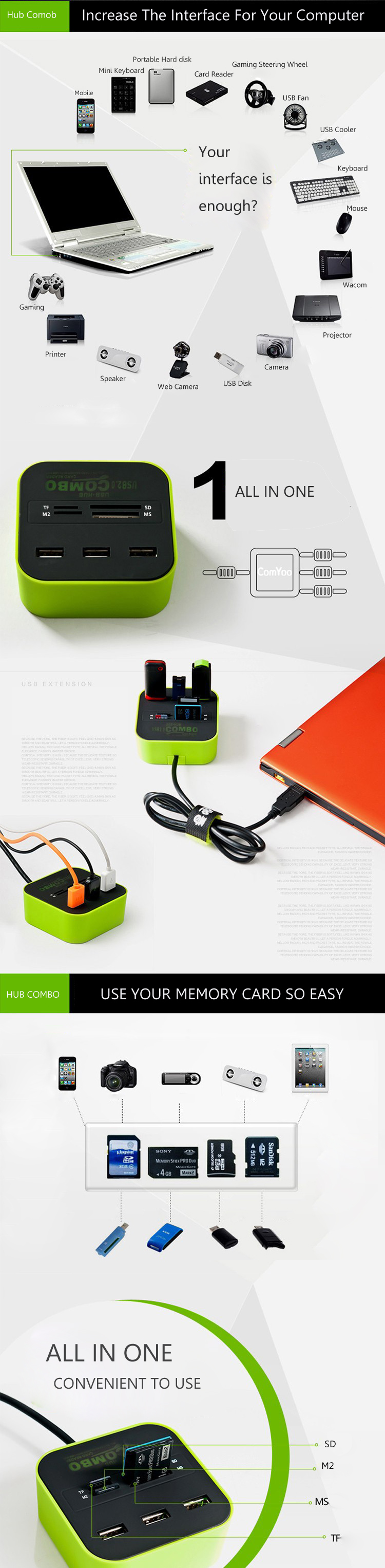 1 x 3 Port USB HUBCombo